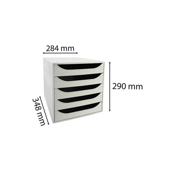 Úložný box na dokumenty, plastový, 5-zásuvkový, EXACOMPTA "Ecobox Office", sivý