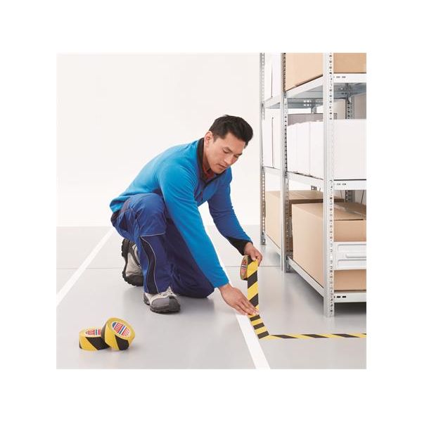Mäkká PVC páska tesaflex® 4169 je ideálnou voľbou pre trvalé označenie podláh. - oblasti použitia: označovanie pracovných plôch v továrňach a závodoch, označovanie kľúčových vodiacich línií pre stroje ako sú transportné roboty a označovanie miest na parkoviskách - vinylová páska má celkovú hrúbku 203 µm a pozostáva zo silného SPVC nosiča a prírodného kaučukové lepidlo - páska tesaflex® 4169 pochádza z pohodlného dávkovača a zvládne ohyby bez záhybov, pretože podklad zostáva pružný aj pri nízkych teplotách - akrylové lepidlo poskytuje vynikajúcu priľnavosť na polárnych aj nepolárnych povrchoch, ako aj nerovných a drsné povrchy