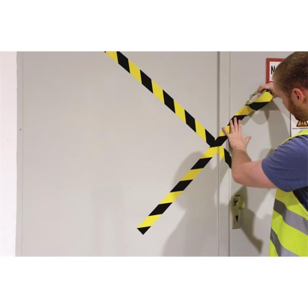 Samolepiaca podlahová označovacia páska na dočasné označenie a identifikáciu pevných alebo pohyblivých objektov a povrchov. Použitie gumového lepidla robí pásku z mäkkého PVC veľmi prispôsobivou.