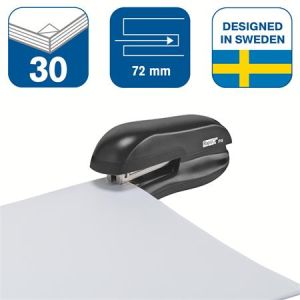 Zošívačka s plným plnením spiniek, oceľovým mechanizmom, kvalitným plastom ABS a gumou TPE. Módny ergonomický dizajn. Vhodná pre domácnosť aj kanceláriu.