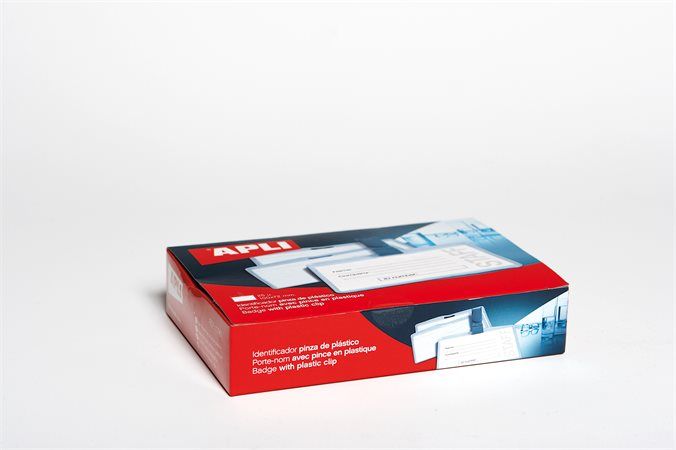 Súprava plastovej visačky a štipca pre uchytenie na odev. Visačka z priehľadného PVC materiálu. Rozmer: 97x62x2 mm