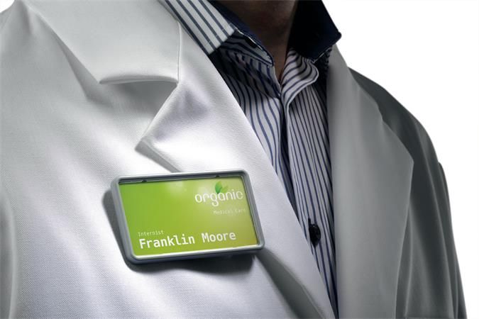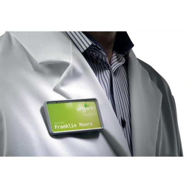 Visačka z priehľadného PVC. Uchytenie na odev pomocou štipca alebo zatváracieho špendlíka.