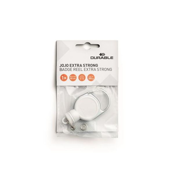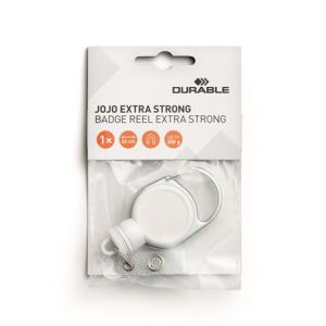 Klip s navíjacou šnúrou a karabínou, DURABLE "Extra strong", biela