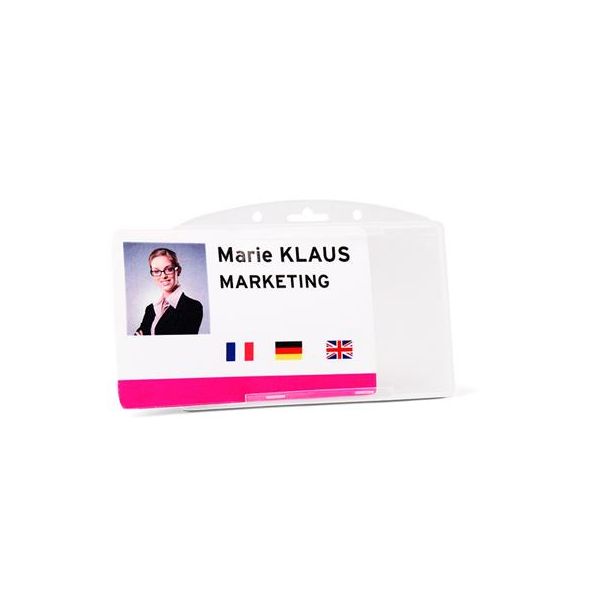Ľahký, tenký, pevný, ležatý držiak na karty s predným otvorom, ktorý poskytuje ideálnu ochranu preukazov, prístupových kariet a iných kariet. Chráni citlivú zadnú stranu karty (magnetický prúžok), pričom predná strana je plne viditeľná. Dá sa použiť s akýmkoľvek príslušenstvom T3L (okrúhly alebo plochý remienok na krk, výsuvný držiak karty).