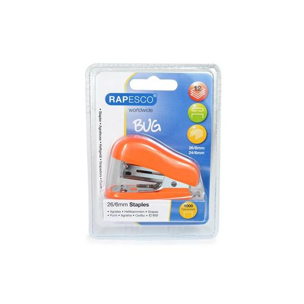 Zošívačka, 24/6, 26/6, 12 listov, RAPESCO "Bug Mini", oranžová