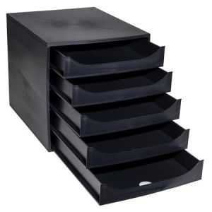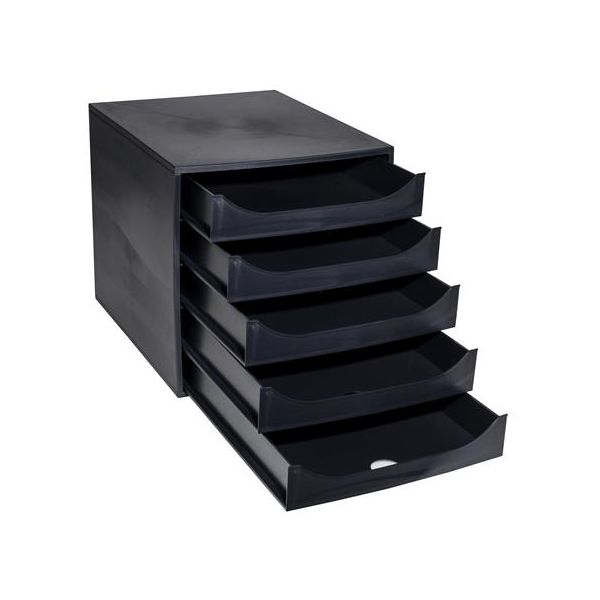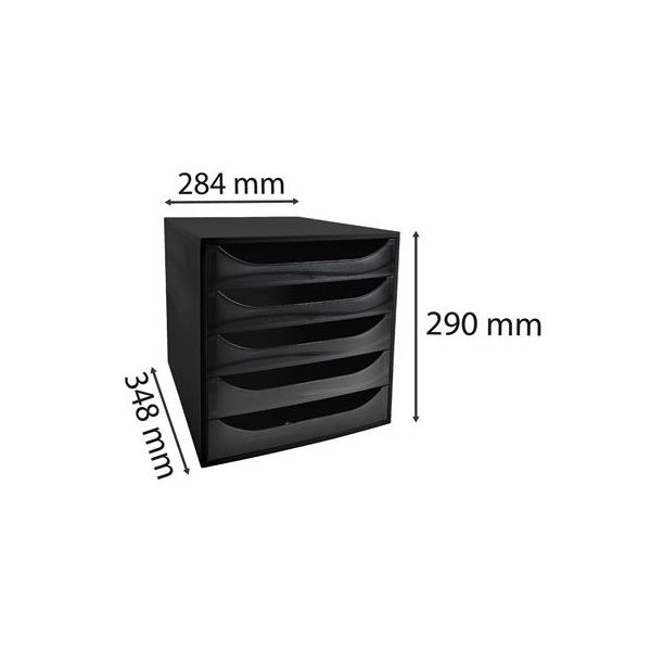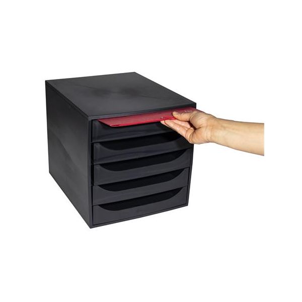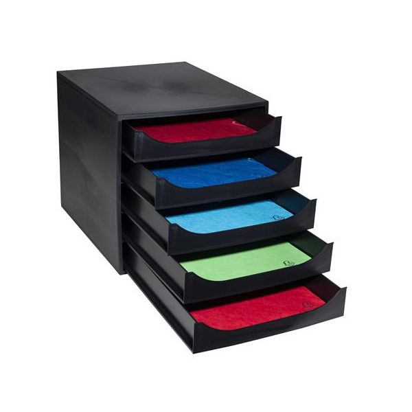 Úložný box na dokumenty, plastový, 5-zásuvkový, EXACOMPTA "Ecobox ExoBlack", čierny