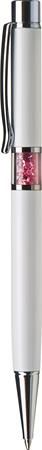 Guľôčkové pero, Crystals from SWAROVSKI®, biele, s ružovými krištáľmi v strede tela, 14cm