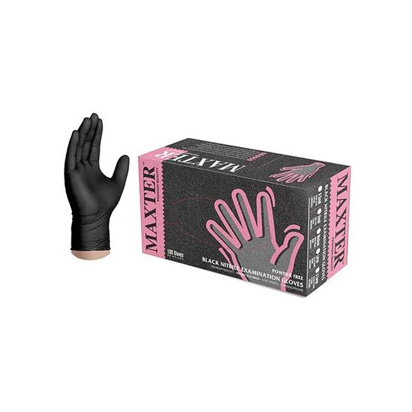 Materiál: nitril (3,6 g) AQL: 1,5. Vlastnosti: prémiová kvalita, jednorazové, nesterilné, nepudrované, celoplošne mikrozdrsnené, zrolovaná stopka, dĺžka: 240mm, možno nosiť na oboch rukách. Farba: čierna Veľkosť: S, M, L, XL Balenie: 100 ks/krabica, 10 krabíc/kartón