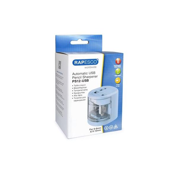 Strúhadlo, 2 otvory, stolové, elektrické, USB konektor, RAPESCO"PS12-USB", svetlomodrá