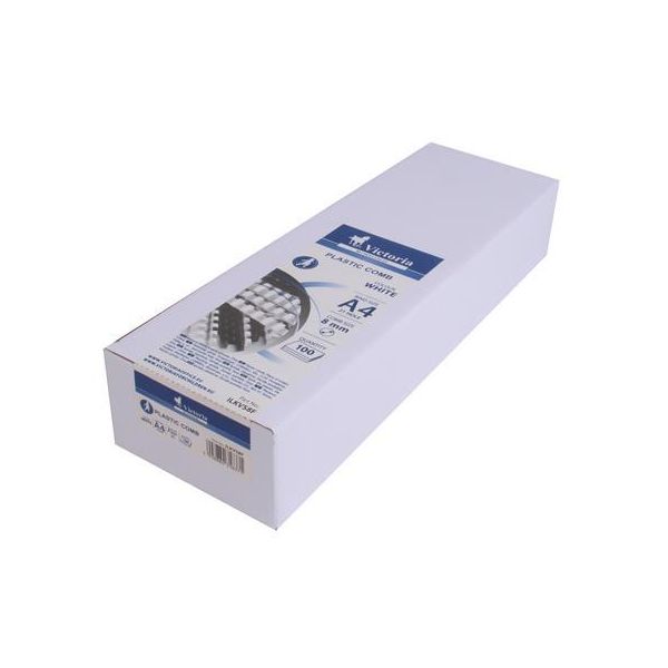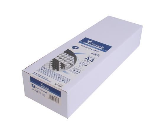 Hrebeň, plastové, 8 mm, 21-40 listov, VICTORIA OFFICE, biely