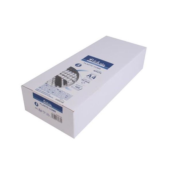 Hrebeň, plastový, 10 mm, 41-55 listov, VICTORIA OFFICE, biely