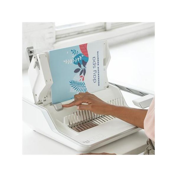 Systém 3v1: špirálovanie, zošívanie a dierovanie sa vykonáva v jednom stroji. Elegantný a prepracovaný dizajn sa dobre hodí k modernému pracovnému prostrediu.