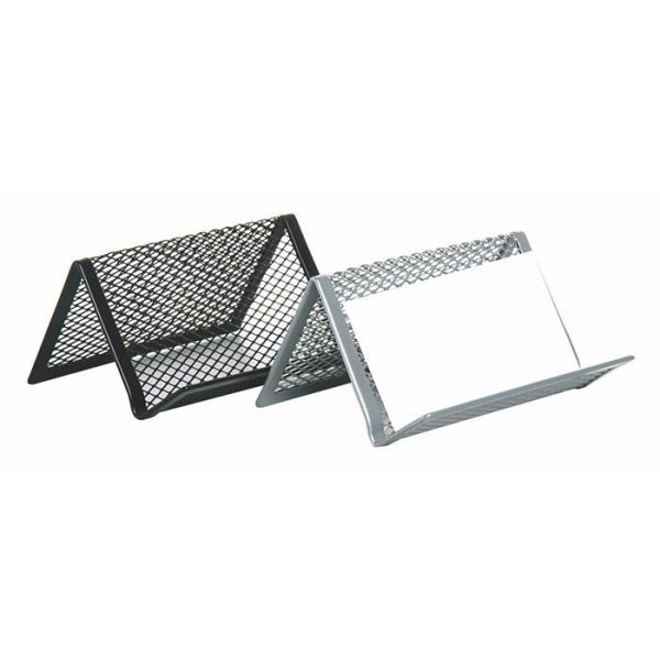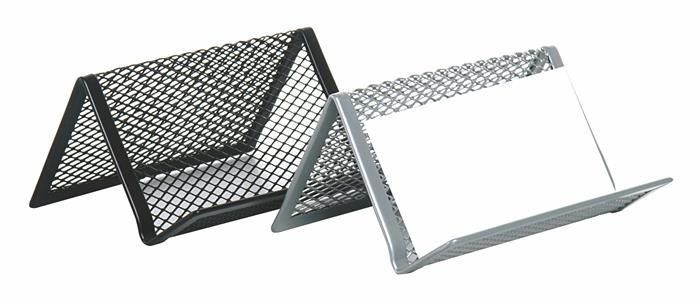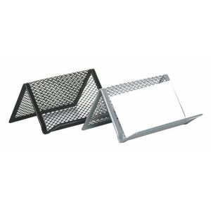 Drôtený stojan na vizitky, čierny. Rozmer: 95x71x43 mm. Praktický a jednoduchý doplnok každého písacieho stola, či kancelárie.