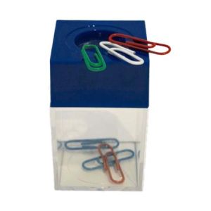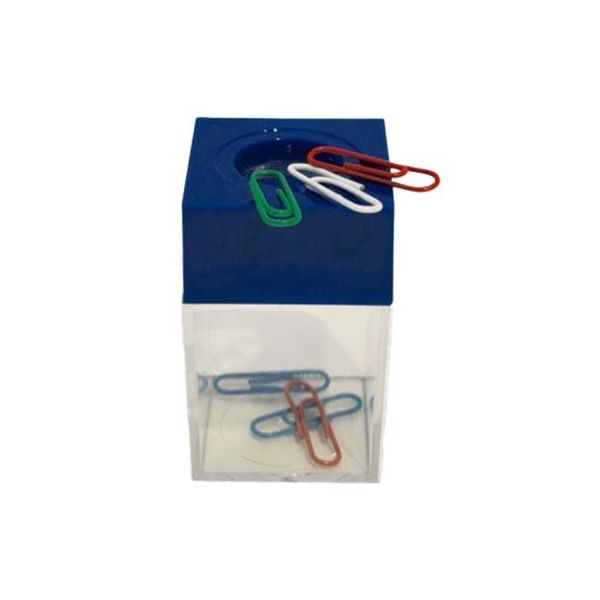 Držiak na kancelárske spinky s priehľadným telom a magnetickým vrchnákom. Spinky nie sú súčasťou balenia, výrobok sa predáva prázdny.