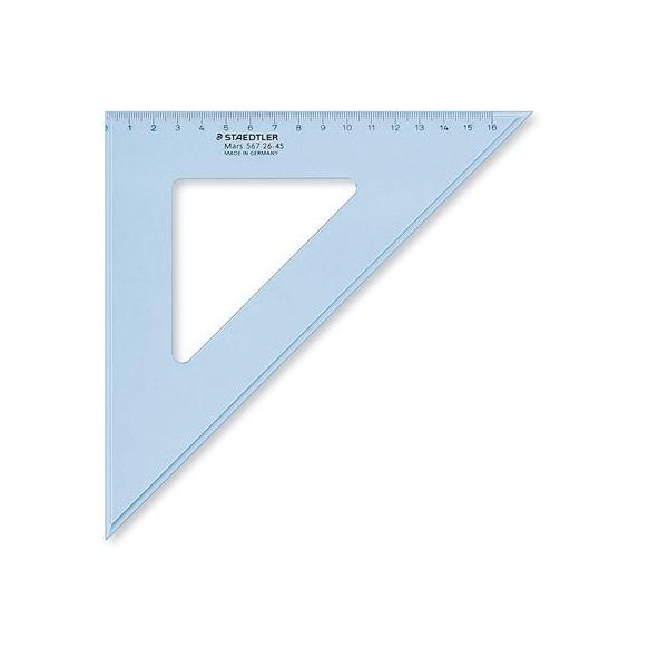 Trojuholník s ryskou, s pravítkom na pravej odvesne 16 cm, vyrobený z transparentného PVC. Kvaltný trojuholník, ktorý firma JUNIOR ponúka pod vlastnou značkou.