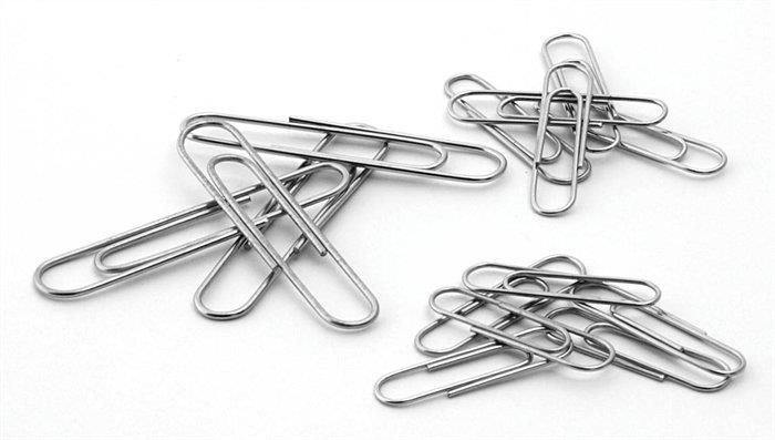 Listové spony - hladké poniklované, balené v papierovej krabičke.