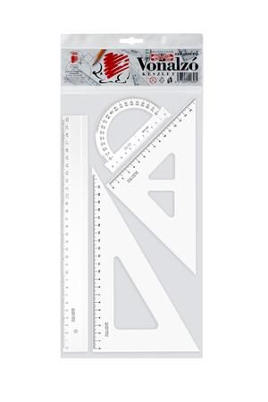 Trojuholník s ryskou, s pravítkom na pravej odvesne 16 cm, vyrobený z transparentného PVC. Kvaltný trojuholník, ktorý firma JUNIOR ponúka pod vlastnou značkou.