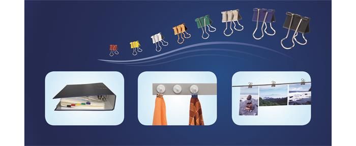 Kovové pružinové klipy v striebornej farbe, vhodné na spínanie dokumentov, šírka klipu 50 mm. Priemer magnetu je 27 mm.