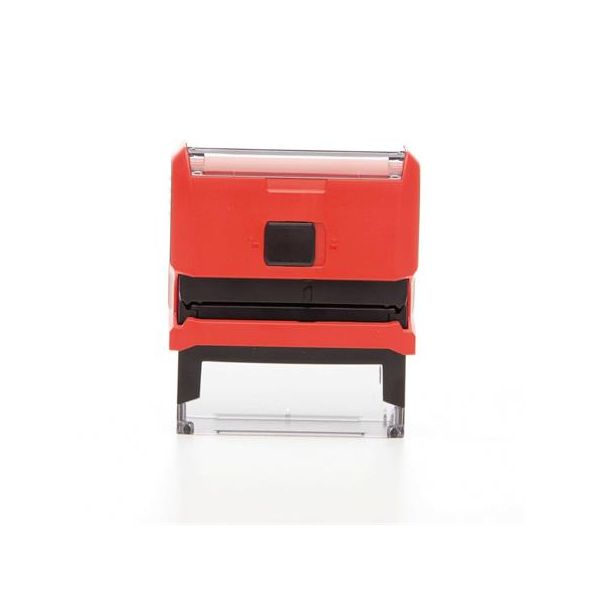 Textová pečiatka pre obdĺžnikovú potlač. Ergonomický dizajn, jednoduché použitie. - farba náhradného vankúša: čierna - veľkosť tlače: 14 x 38 mm, 4 riadky - náhradný vankúš: E20