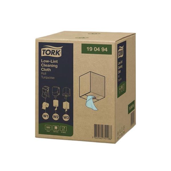 TORK Low-Lint čistiaca utierka je pevná a pružná. Kotúč je balený v ochrannom kartónovom obale a možno ho použiť v Tork zásobníkoch na podlahu či na stenu, ktoré sú vyvinuté na bezpečné, účinné a spoľahlivé použitie. Ľahko sa napĺňajú a dávkujú po útržkoch s možnosťou zobrať si potrebnú utierku len jednou rukou.