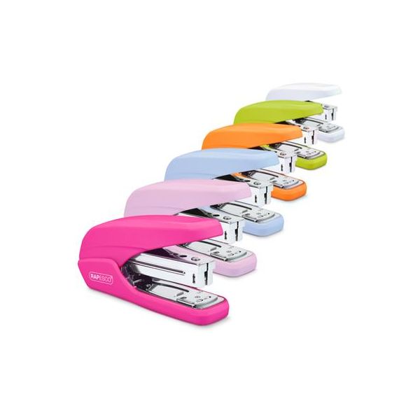Plastová malá/vrecková zošívačka, výkon zošitia až do 15 listov, vhodná náplň spiniek 24/6 a 26/6. Typ zošita flat clinch - šetrí až 25% miesta ako bežný typ zošitia. Dĺžka ramena: 19 mm