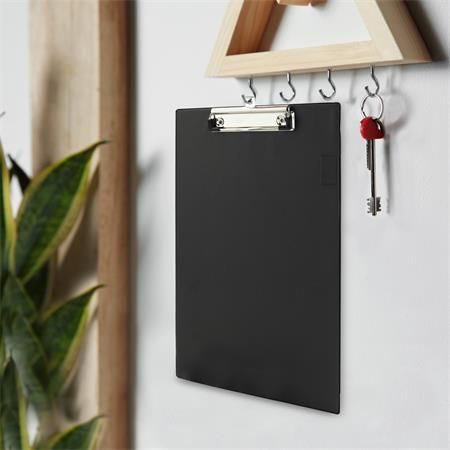 Písacia podložka s kovovým klipom na dokumenty formátu A4, možnosť zavesenia. Materiál: z pevného kartónu potiahnutého PVC.