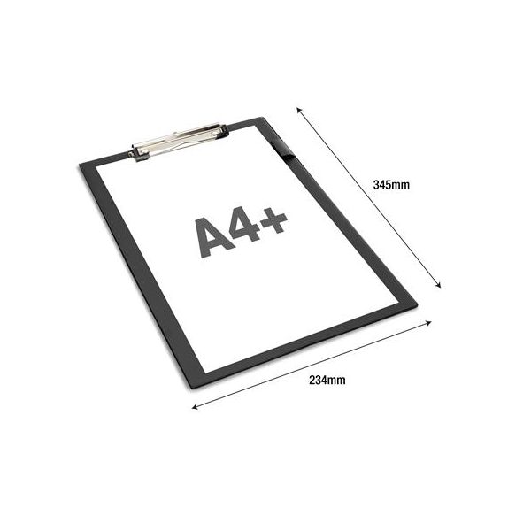 -s pútkom na pero -materiál: PVC -stabilná písacia plocha, zaoblené rohy -veľkokapacitný klip (max. 100 listov 80 g papiera) -orientácia: na výšku -formát: A4+