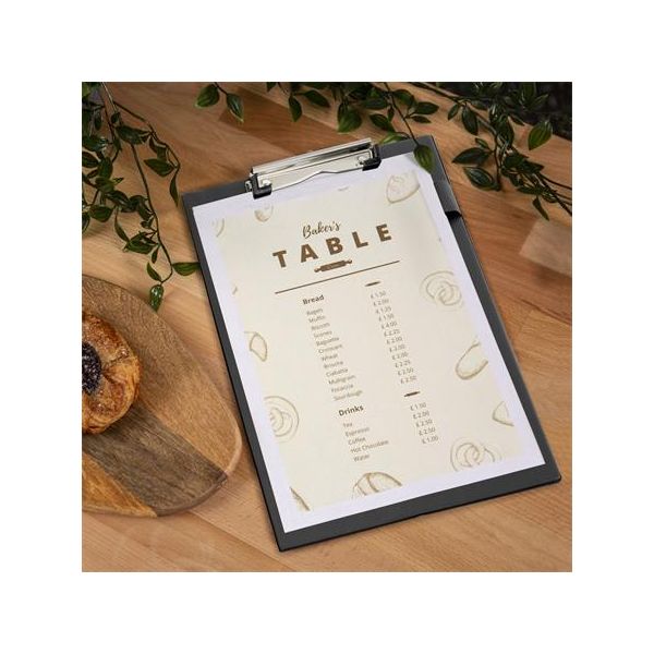 Písacia podložka s kovovým klipom na dokumenty formátu A4. Vyrobené z tvrdeného kartónu.