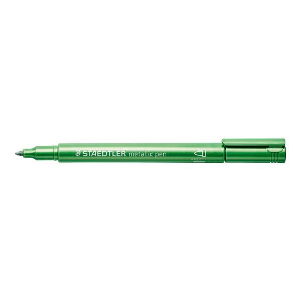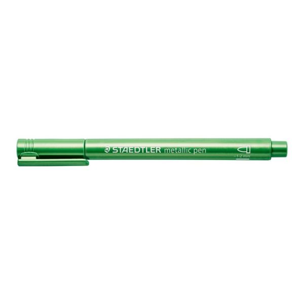 Dekoračný popisovač, 1-2 mm, kužeľový hrot, STAEDTLER "8323", kovovo zelený