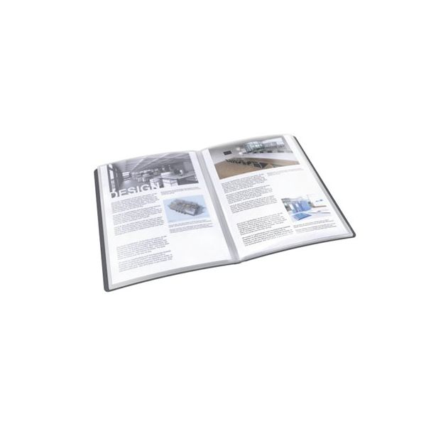 Katalógová kniha na prezentáciu materiálov formátu A4, (vkladanie zhora). - kniha obsahuje 20 transparentných PP obalov (0,04 mm) na vloženie dokumentov A4- hrúbka obalu 0,75 mm s papierovou etiketou na chrbtovej strane