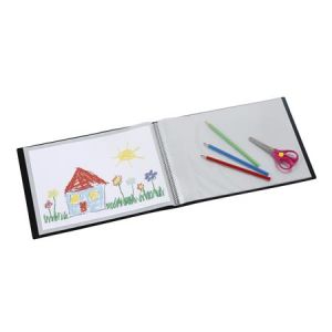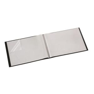 Katalógová kniha na prezentáciu materiálov formátu A4, (vkladanie zhora). - kniha obsahuje 20 transparentných PP obalov (0,04 mm) na vloženie dokumentov A4- hrúbka obalu 0,75 mm s papierovou etiketou na chrbtovej strane