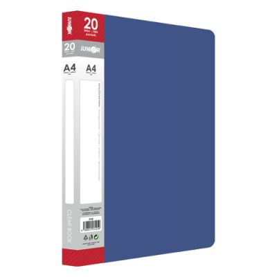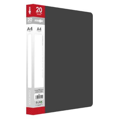 Katalógová kniha na prezentáciu materiálov formátu A4, (vkladanie zhora). - kniha obsahuje 20 transparentných PP obalov (0,04 mm) na vloženie dokumentov A4- hrúbka obalu 0,75 mm s papierovou etiketou na chrbtovej strane