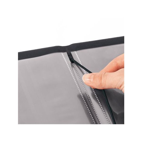 Katalógová kniha na prezentáciu materiálov formátu A4, (vkladanie zhora). - kniha obsahuje 20 transparentných PP obalov (0,04 mm) na vloženie dokumentov A4- hrúbka obalu 0,75 mm s papierovou etiketou na chrbtovej strane