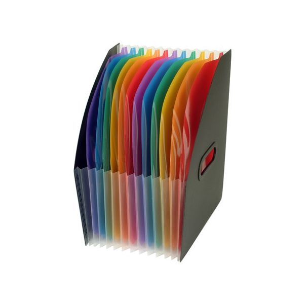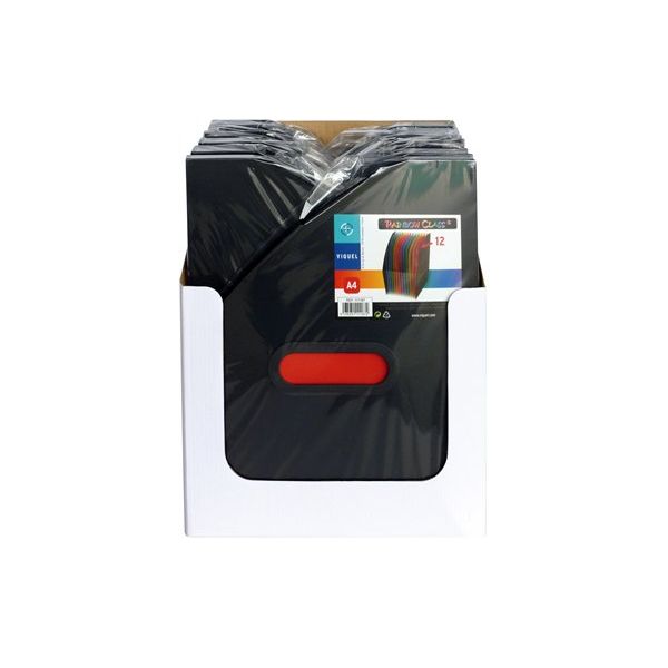 Zakladač, harmonikový, PP, 12 diely, VIQUEL, "Rainbow Class", čierny