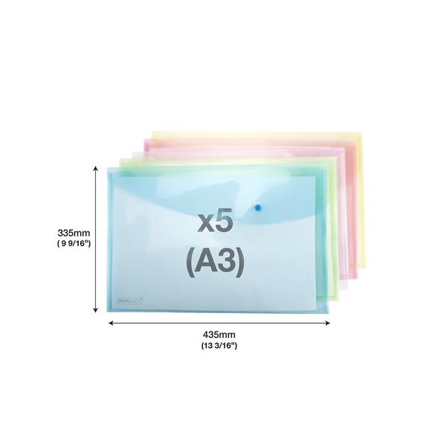 Veľkosť: A3Zatváranie: s patentomMateriál: PPFarba: mixideálne na kancelárske, domáce alebo školské používanie odolný PP materiál na patent max. kapacita: 50 listov balenie obsahuje rôzne pastelové…