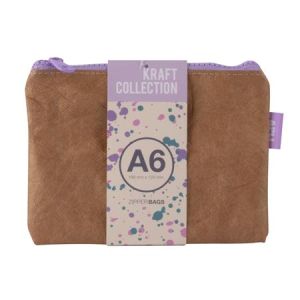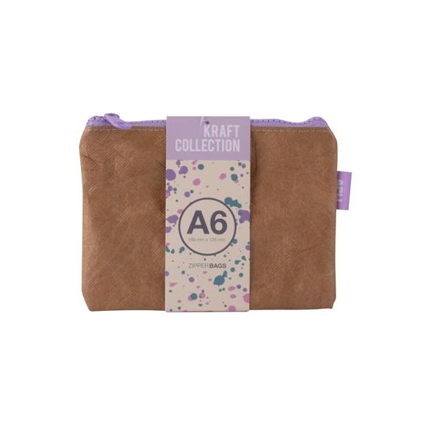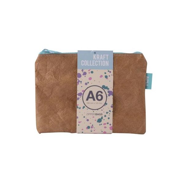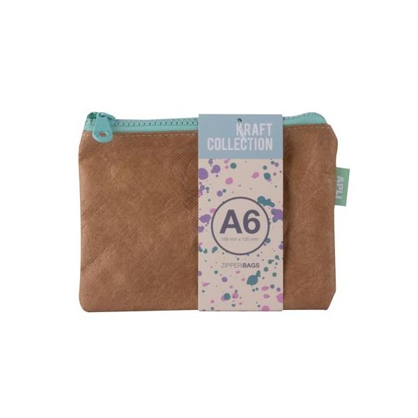 Púzdro na drobnosti, na zips, textúra koženého efektu, plast, A6, APLI "Kraft", zips rôznych farieb