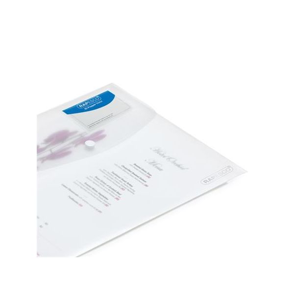 formát A4+ je ideálny v kancelárii, doma ale aj škole -pomocou predného držiaka na vizitku sa dá personalizovať-kapacita: 150 listov -držiak na pero pod obálkou -rozmery: 335 x 240 mm (š x v) -priehľadný