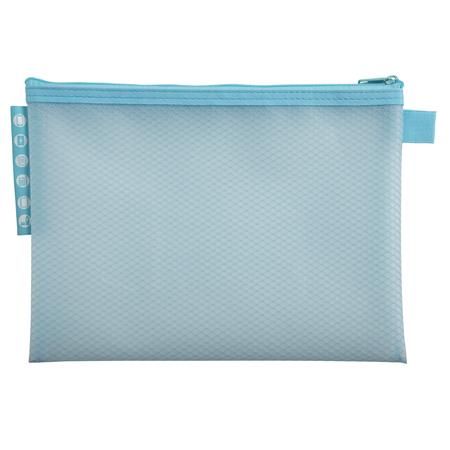 Obal na dokumenty A6 so zapínaním na patentku, vyrobený z kvalitného priehľadného PP materiálu. Farba: modrá.