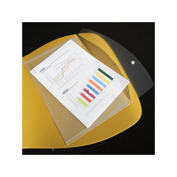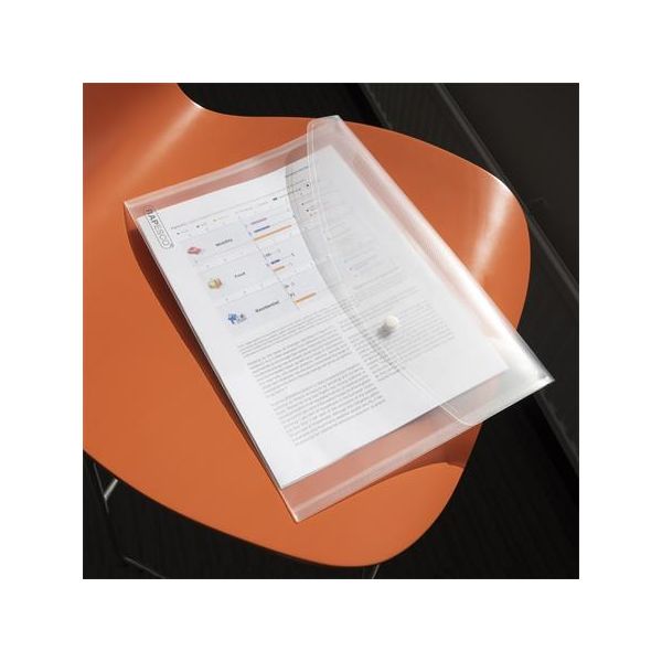 Obal na dokumenty A6 so zapínaním na patentku, vyrobený z kvalitného priehľadného PP materiálu. Farba: transparentná.