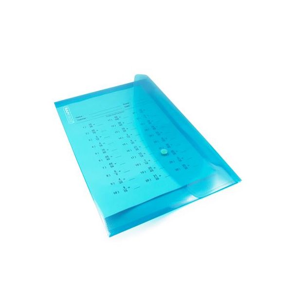 Obal na dokumenty A6 so zapínaním na patentku, vyrobený z kvalitného priehľadného PP materiálu. Farba: modrá.