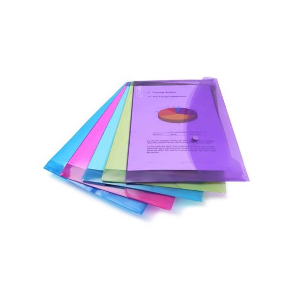 Obal na dokumenty A6 so zapínaním na patentku, vyrobený z kvalitného priehľadného PP materiálu. Farba: transparentná.