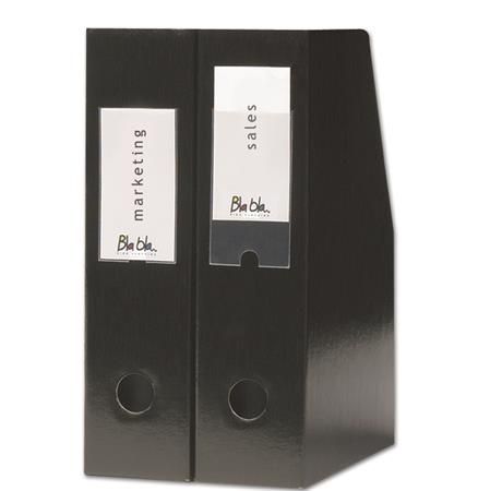 Vrecká vhodné na popis zakladačov, krúžkových blokov, priehradok a pod. Výrez na vrecku uľahčuje manipuláciu s vloženým popisným štítkom. Obsahom balení sú čisté zasúvacie štítky.Rozmery: 18 x 75 mmBalenie: 10 ks