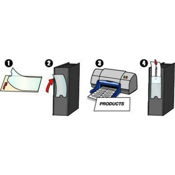 Vrecká vhodné na popis zakladačov, krúžkových blokov, priehradok a pod. Výrez na vrecku uľahčuje manipuláciu s vloženým popisným štítkom. Obsahom balení sú čisté zasúvacie štítky.Rozmery: 18 x 75 mmBalenie: 10 ks