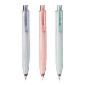 Gélové pero s transparentným plastovým telom, jednofarebným ergonomicky tvarovaným úchopom. Vymeniteľná gélová náplň modrej farby, šírka stopy 0,5 mm. Horná časť dekoračne potlačená detským motívom.