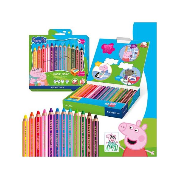 Farebné ceruzky, sada, šesťhranné, jumbo, STAEDTLER „Noris® junior 140", Peppa Pig, 12 farieb