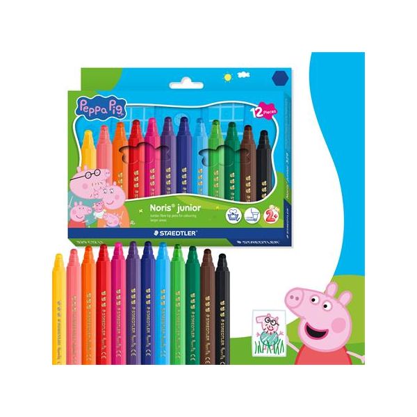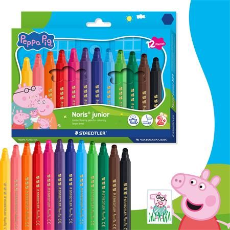 Fixky, sada, 2,5 mm, vyprateľné, jumbo, STAEDTLER „Noris® junior 329”, Peppa Pig, 12 farieb, 12ks