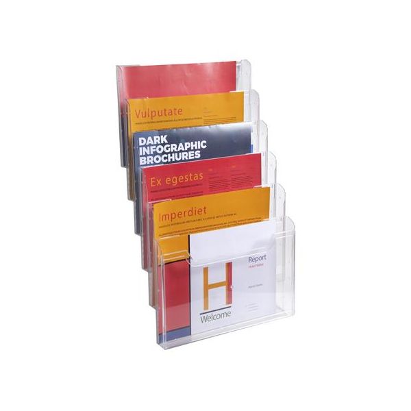 Vynikajúci nástroj pre marketingovú komunikáciu. Univerzálny stojan z materiálu, odolného proti praskaniu. Ideálny na recepcie alebo v servisoch. Vhodný pre materiály v orientácii na výšku (vertikálne). Farba priehľadná číra.