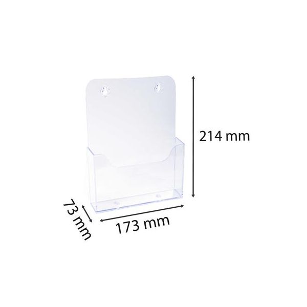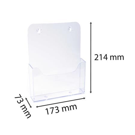 -ideálny doplnok na recepciu, do show roomov alebo čakarní -plast-1 priečinok -k stojatým dokumentom formátu A5 -farba: priehľadná -hĺbka priečinku: 28 mm -rozmery: 73 x 214 x 173 mm (š x v x d)