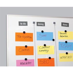 Plastové magnety priemeru 20mm, praktické k magnetickým tabuliam. Balené na blistri po 8 kusoch v štyroch výrazných farbách.