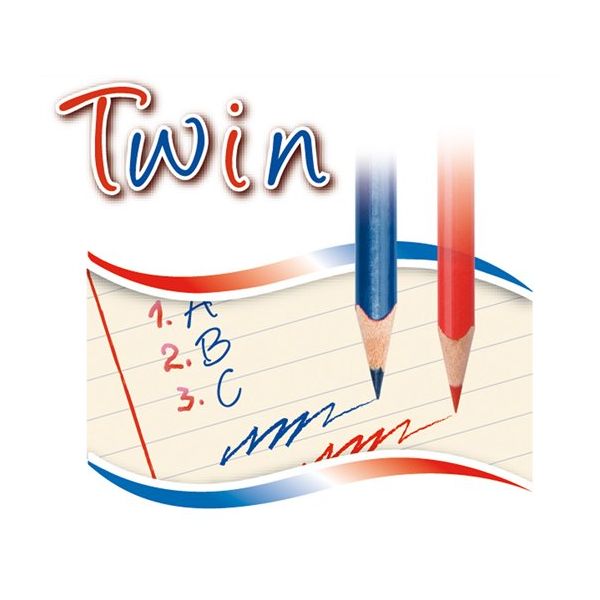 obojstranné ceruzky: čerený a modrý hrot na opačných koncoch, nevygumovateľná farba, ideálna voľba pri učení, nelámavý, 100% lepený hrot, hrúbka grafitovej tuhy: 3 mm ("TWIN") a 5 mm ("TWIN JUMBO"), 1ks/bal